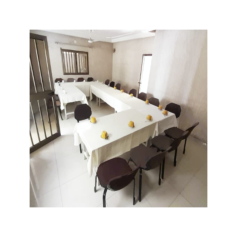 Salle de conférence (jusqu'à 80 personnes) – Espace moderne et entièrement équipé pour accueillir jusqu'à 80 participants. Doté de mobilier ergonomique , d'un système audiovisuel performant (vidéoprojecteur, écrans, sonorisation), d'un accès internet haut débit, et de services complémentaires (restauration, climatisation, éclairage modulable ).